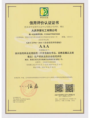 大慶華營化工有限公司成立于2006年7月10日,注冊資金3300萬元,公司類型為有限責(zé)任公司。位于大慶高新技術(shù)產(chǎn)業(yè)開發(fā)區(qū)宏偉園區(qū),是一家集油田助劑產(chǎn)品的研發(fā)、生產(chǎn)、銷售和技術(shù)服務(wù)為一體的現(xiàn)代化高新技術(shù)企業(yè)。公司注重科技創(chuàng)新,公司擁有18項自主知識產(chǎn)權(quán)。企業(yè)承擔(dān)過國家火炬計劃重點(diǎn)項目、國家科技型中小企業(yè)創(chuàng)新項目等,2011年被科技部火炬高新技術(shù)產(chǎn)業(yè)開發(fā)中心評為國家火炬計劃重點(diǎn)高新技術(shù)企業(yè)。公司十余種產(chǎn)品獲得中國石油天然氣集團(tuán)公司產(chǎn)品質(zhì)量認(rèn)可證書,其中粘穩(wěn)型驅(qū)油劑獲國家火炬計劃重點(diǎn)項目證書。公司憑借多年對大慶油田及周邊油田地質(zhì)情況的研究,可針對各油田地層特點(diǎn)調(diào)整產(chǎn)品的配方,更好地發(fā)揮各類油田助劑的性能。